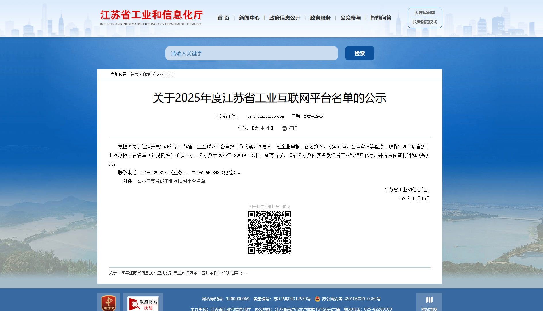 近日,省工信厅将2025年度省级工业互联网平台名单予以公示。公示期为2025年12月19—25日。